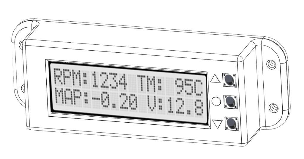 Este dispositivo está diseñado para mostrar en un display LCD de 2 líneas x 16 columnas la información principal de la ECU producida por la firma ChipRace, precisamente el modelo dual para aeronaves N10A. La comunicación entre el dispositivo y la ECU se realiza mediante la Interfaz CAN BUS mediante un cable que puede tener hasta 10 metros de longitud.