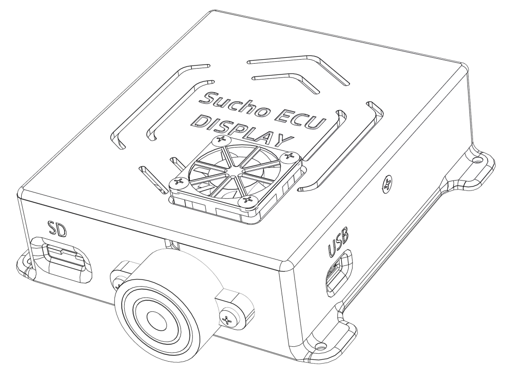 La Sucho EcuDisplay consta de dos módulos, la pantalla propiamente dicha con sus botones y el módulo central en el cual se conecta la pantalla, la ECU y además tiene un puerto USB para conectar una PC y realizar todas las configuraciones y el slot para la tarjeta MicroSD para almacenar los logs de memoria de los vuelos.