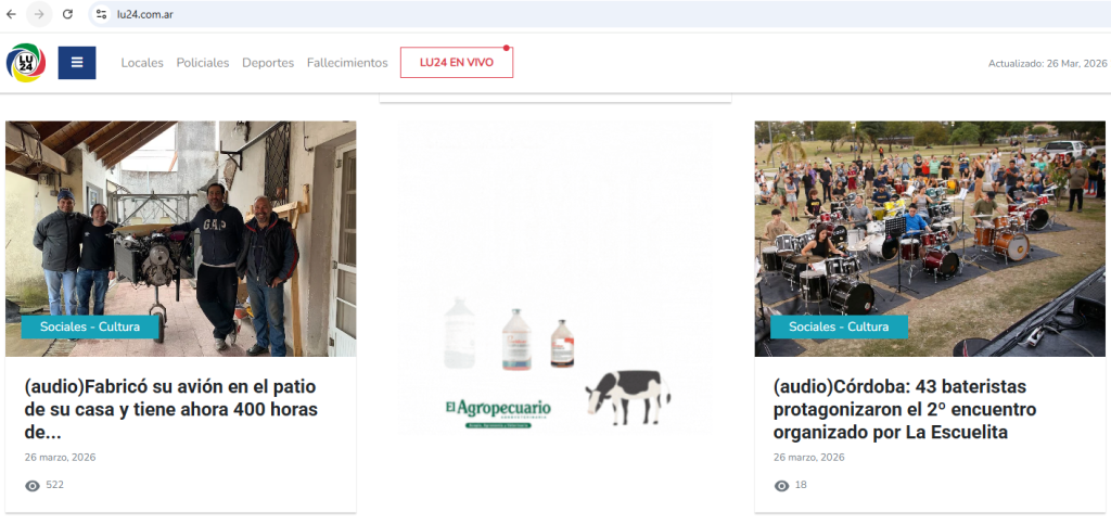 Nota en LU24 de Tres Arroyos del 26 de Marzo de 2026